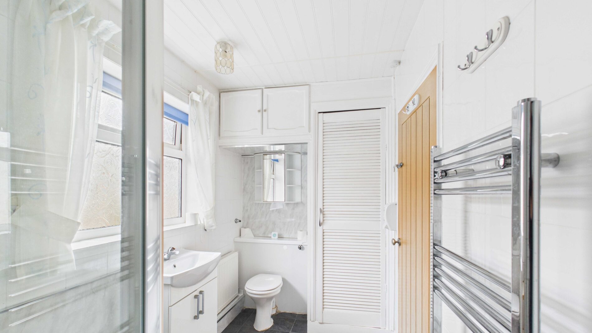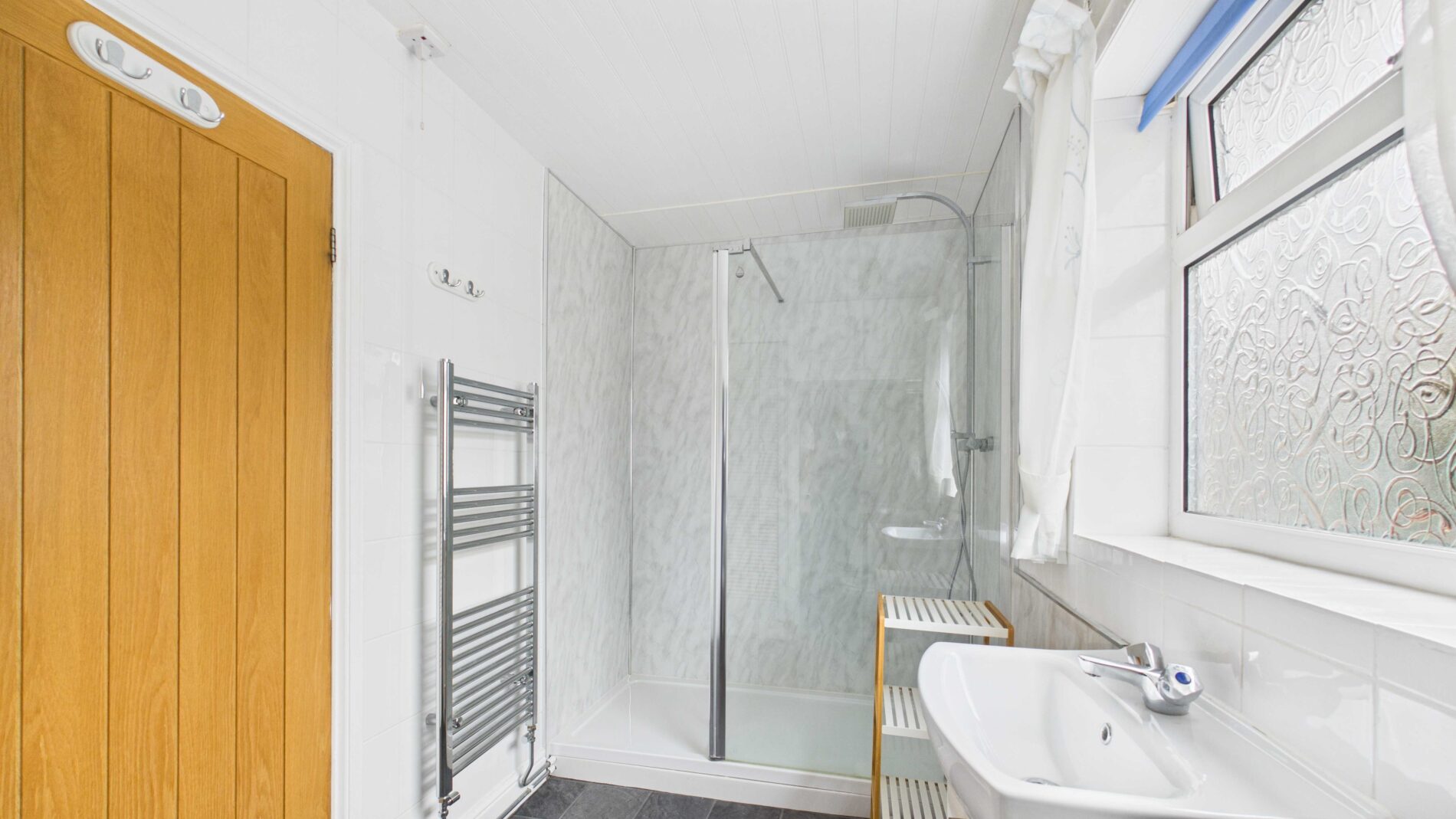 - Modern family shower room: Three-piece suite with toilet, basin, and shower.