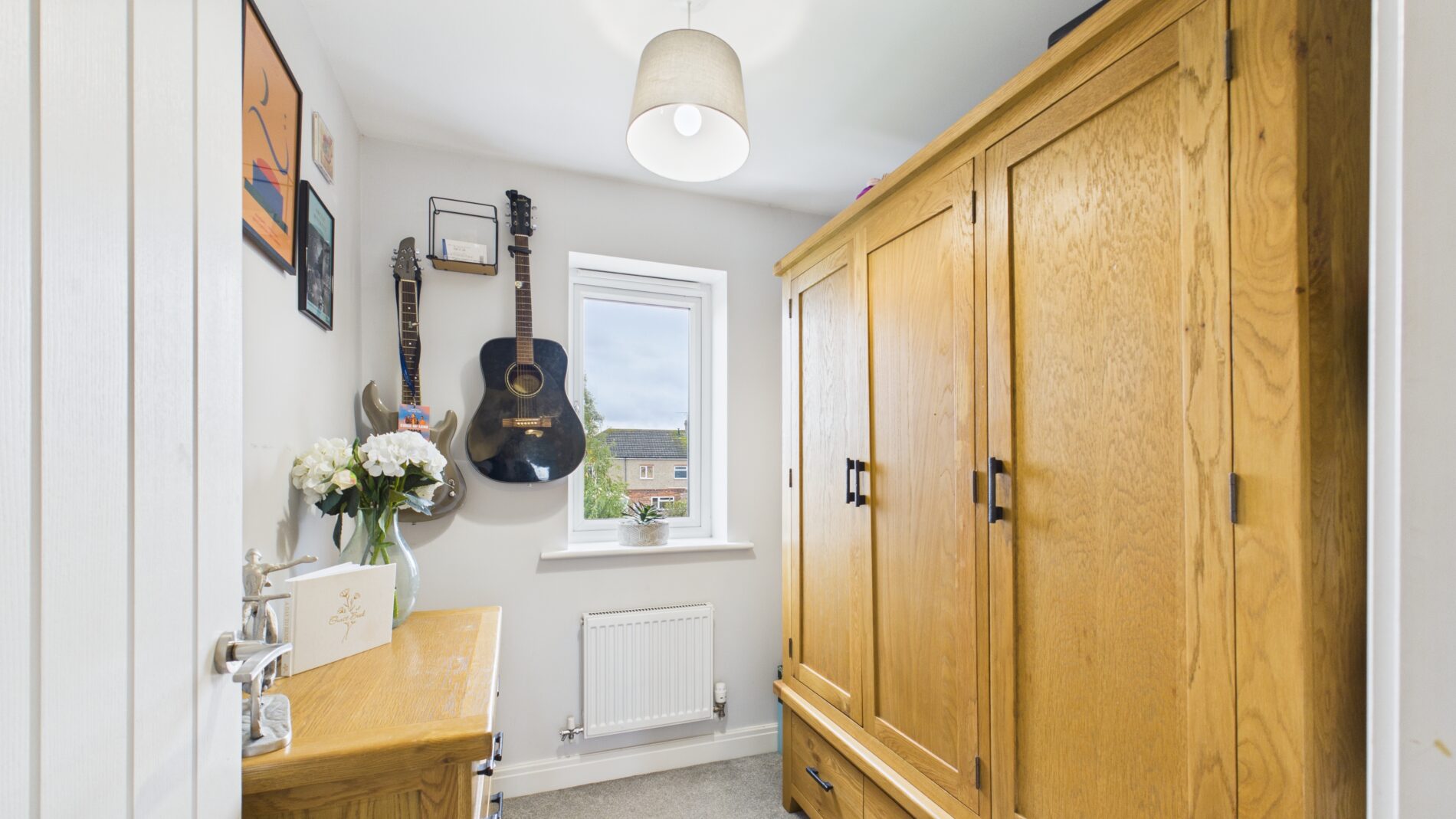 - Three bedrooms: Generous master with ensuite shower room, good-sized second bedroom, and single third bedroom