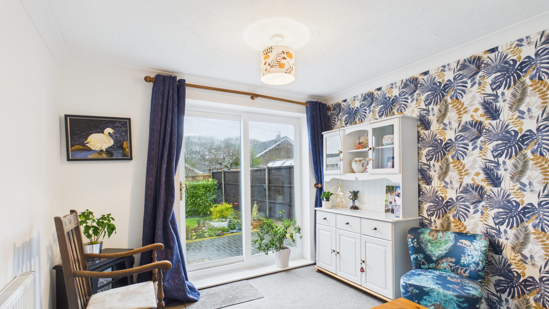 The bungalow offers three bedrooms in total, with one currently used as a snug and benefiting from sliding doors that open directly onto the patio and rear gardenβperfect for enjoying indoor-outdoor living in the warmer months. A main family shower room completes the internal accommodation.