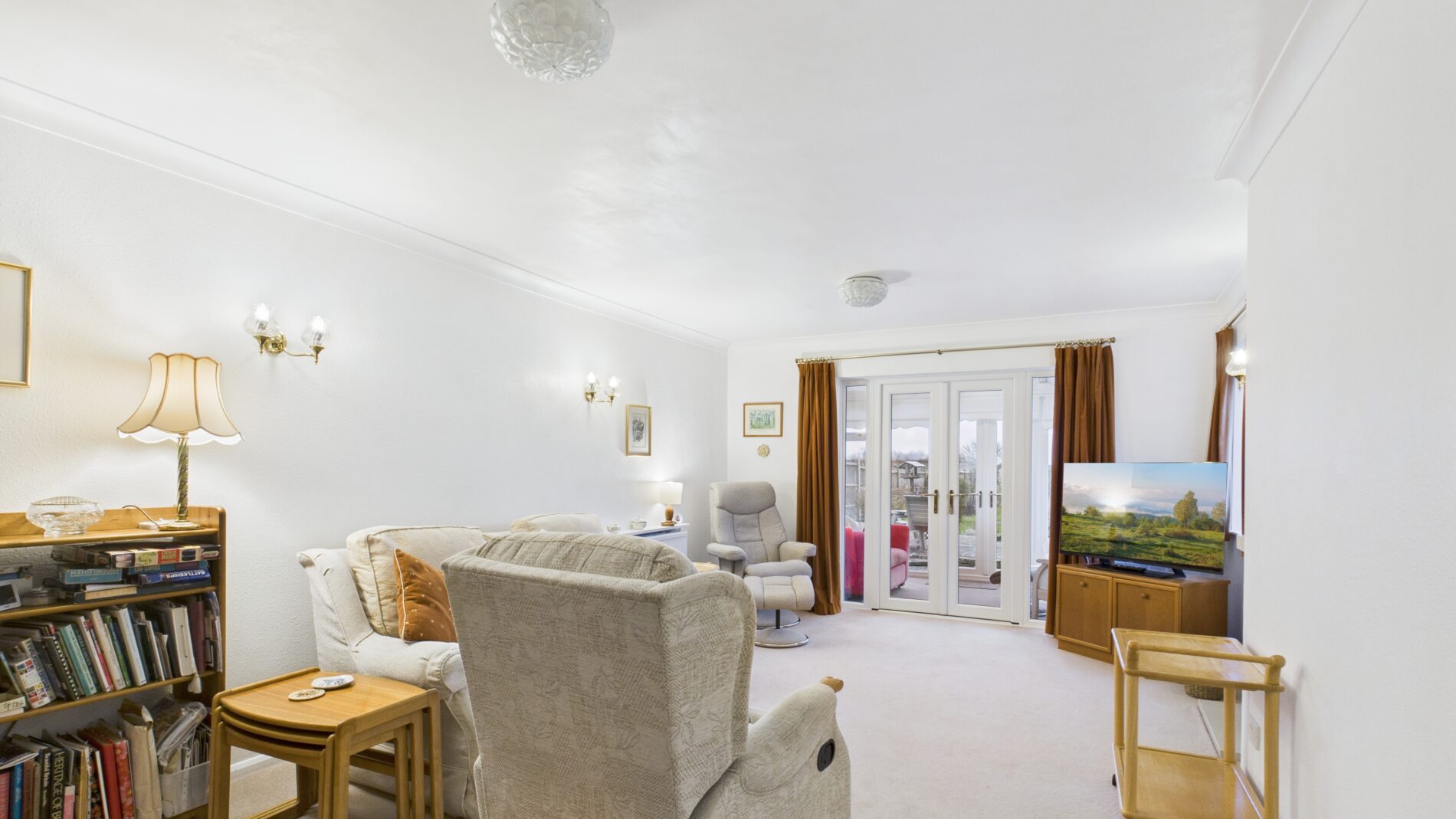 - Generous living room with adjoining sunroom: Sunroom has double doors to the rear garden