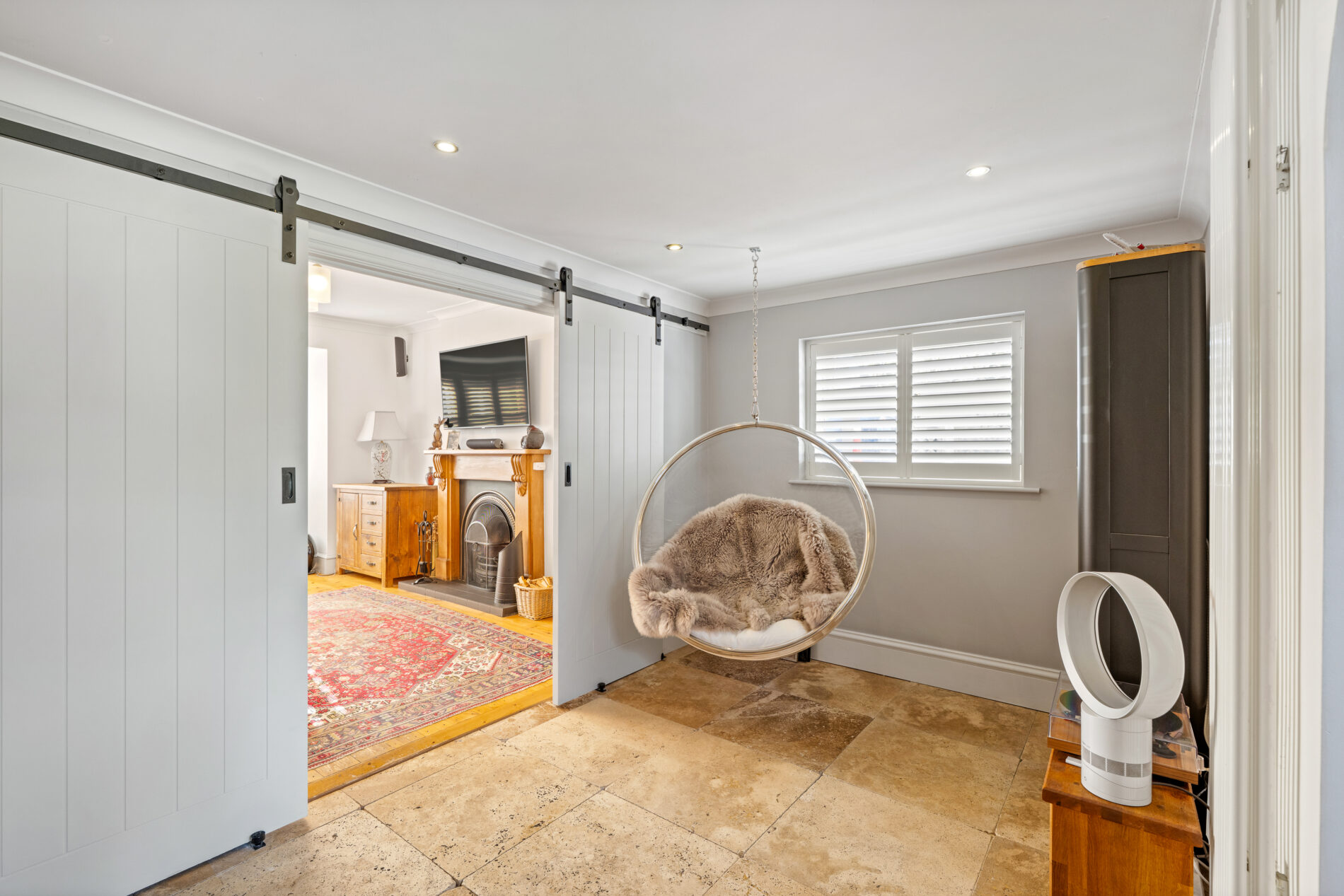 Upstairs, you’ll find four further bedrooms, including a second bedroom with a walk-in wardrobe and a fifth bedroom currently used as a dressing room. There is also a modern shower room for added convenience.