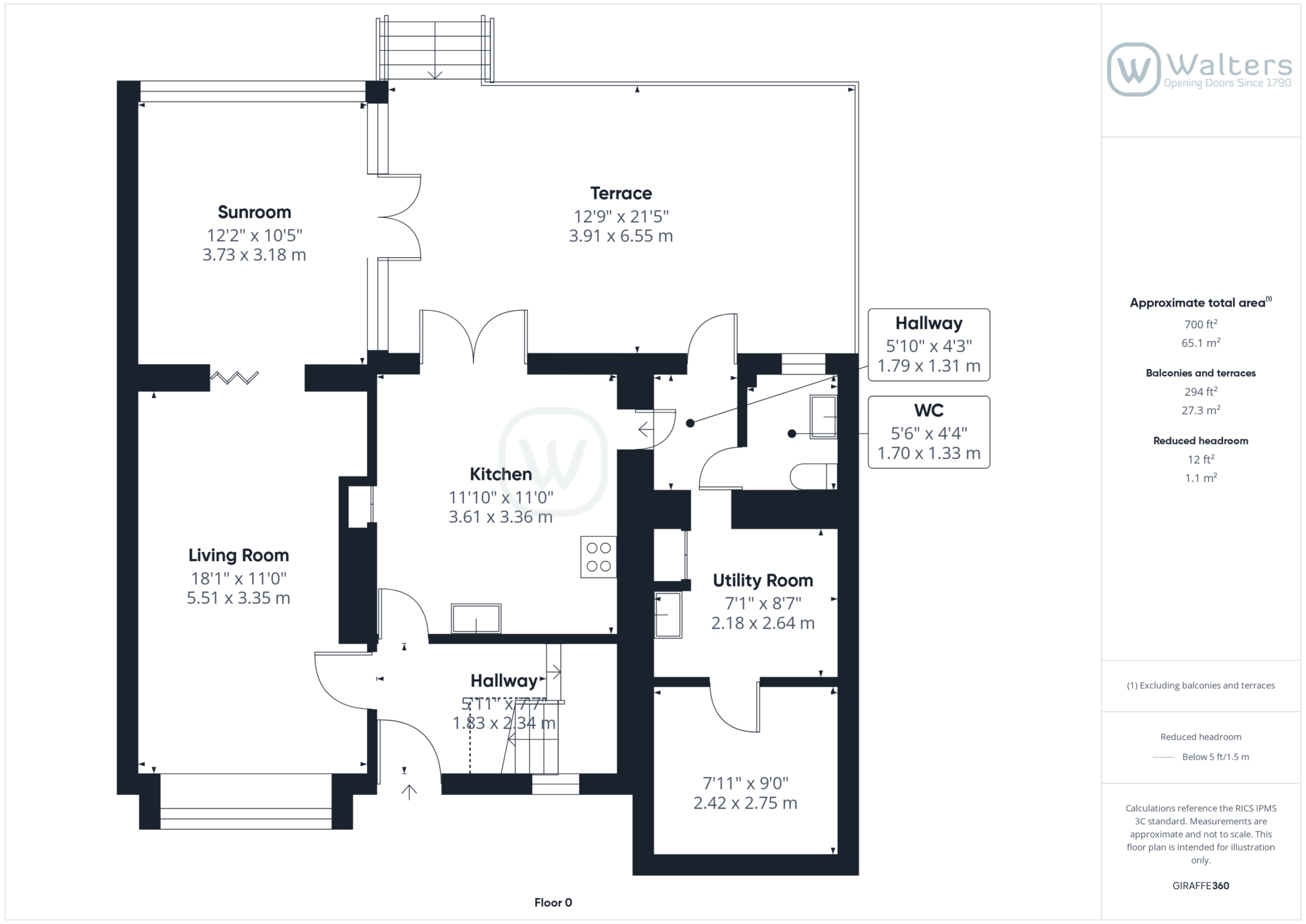 Downstairs WC (5'6" x 4'4" / 1.70m x 1.33m)
