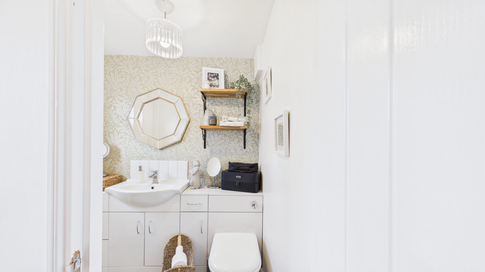 The downstairs WC is both functional and stylish, featuring a toilet and a sink set within a handy storage unit. A rear aspect frosted window allows for natural light while maintaining privacy, and a towel rail adds a practical finishing touch to this convenient ground floor facility.