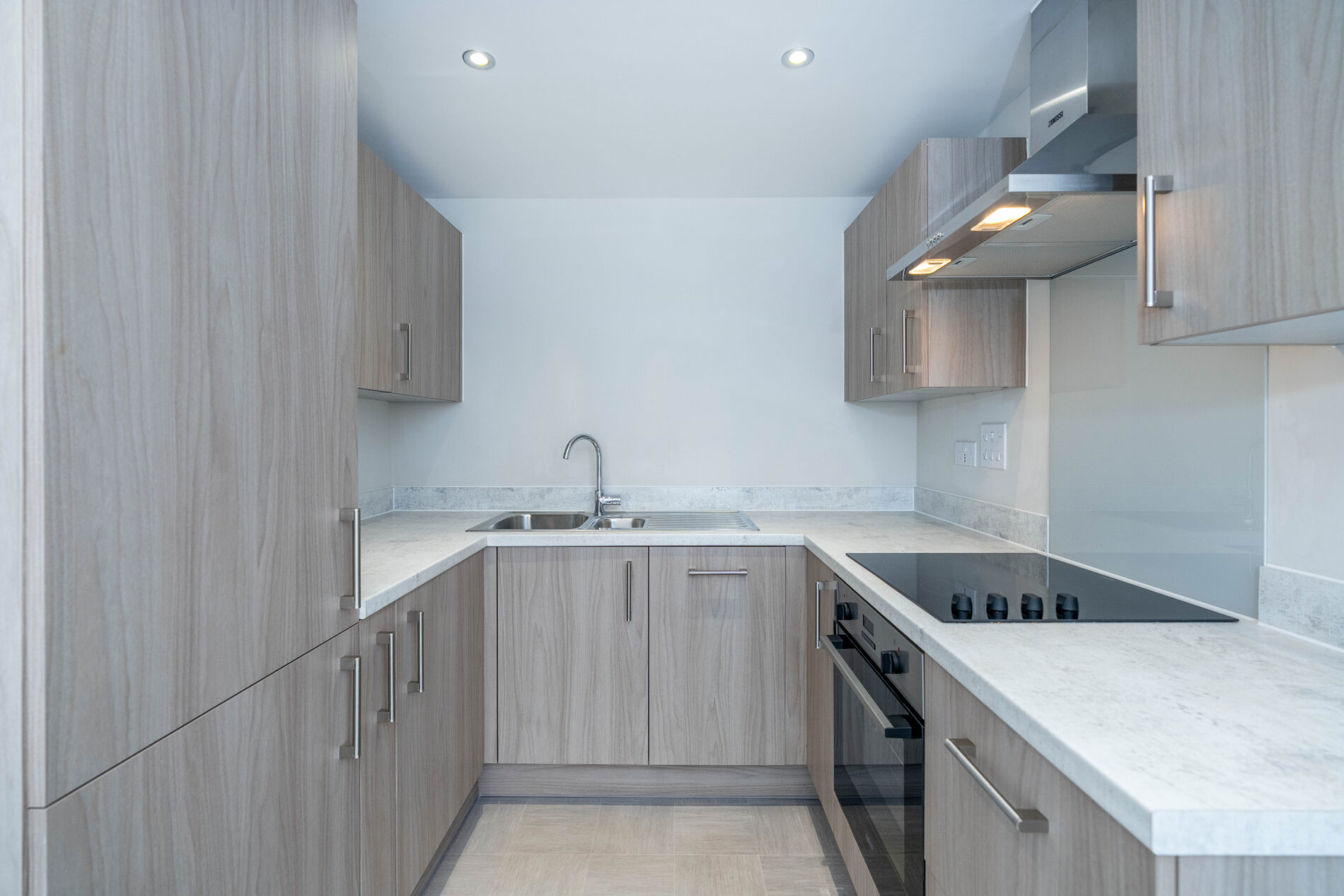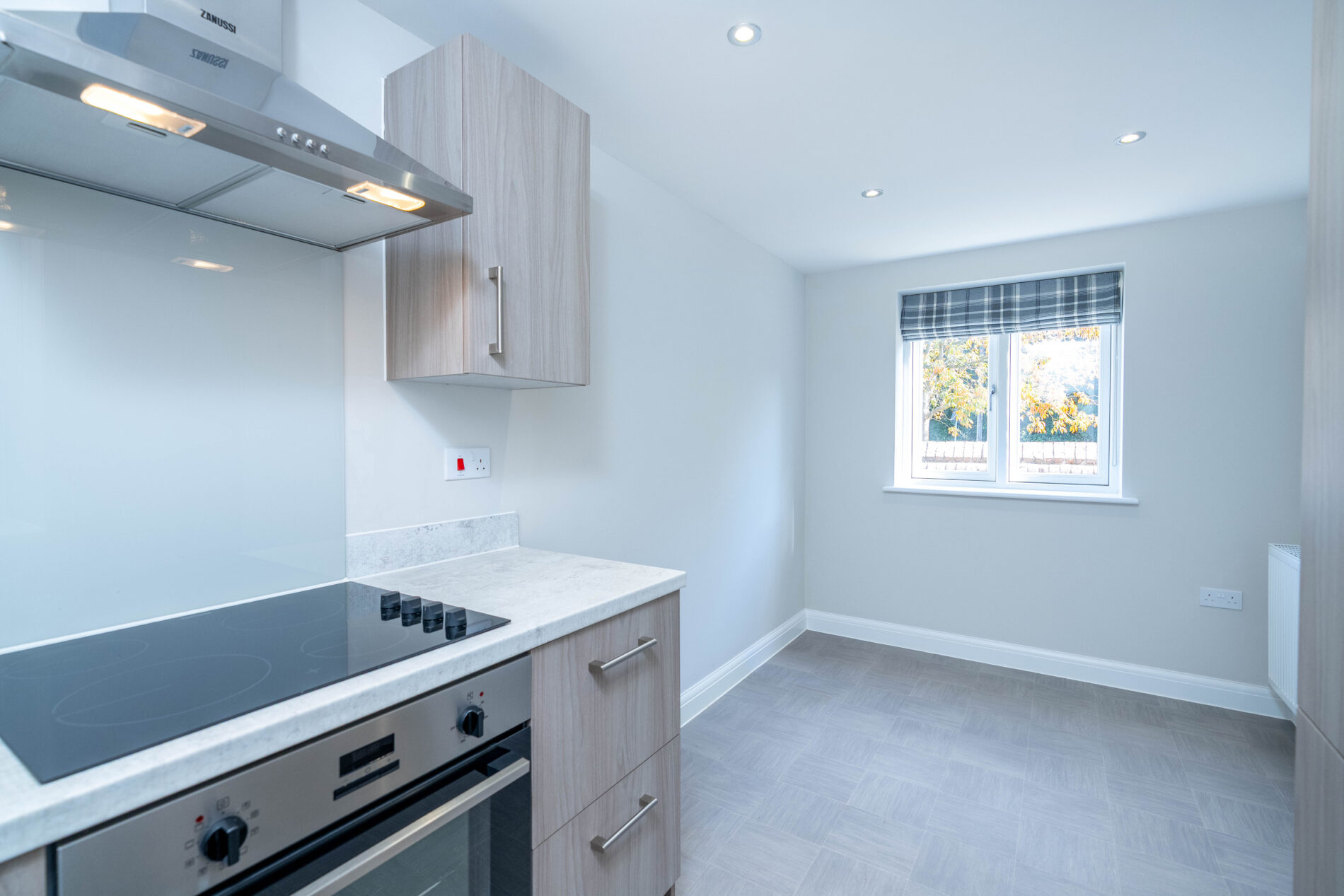 The property features a modern kitchen / breakfast room fitted with a range of contemporary cupboards and worktops. It includes a built-in oven, hob, and extractor hood, along with an integrated dishwasher, washer dryer and fridge freezer. A large stainless steel sink complements the sleek finish, while the space opposite the kitchen provides a perfect area for a table and chairs, creating a bright dining area with a window to the front aspect. The room combines style and practicality, making it ideal for family life or entertaining.