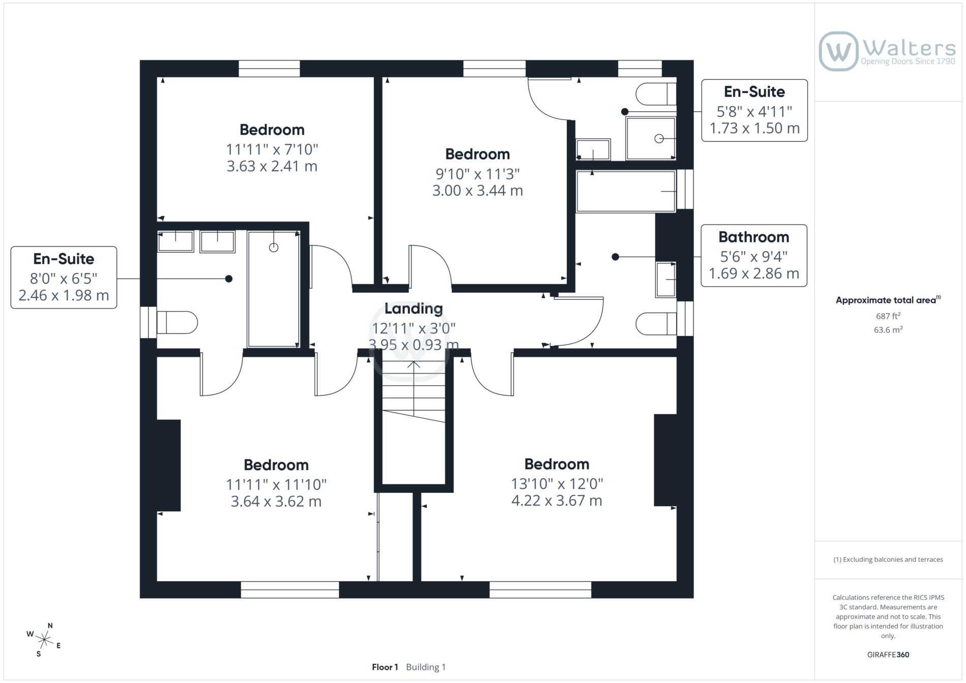 - Four double bedrooms: Two benefitting from ensuite shower rooms