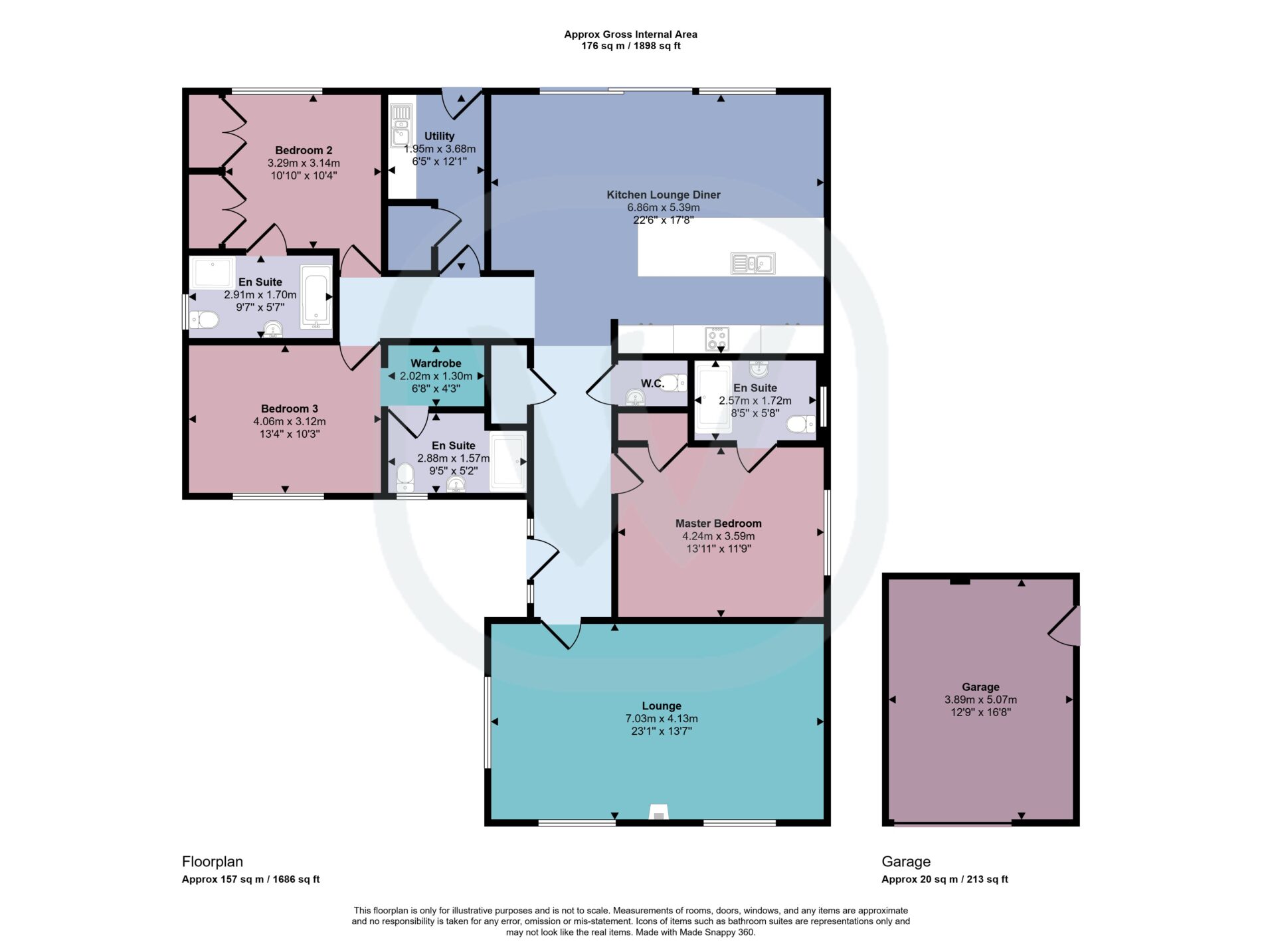 • Three Double Bedrooms, all with En-Suites and Wardrobes with Oak Doors