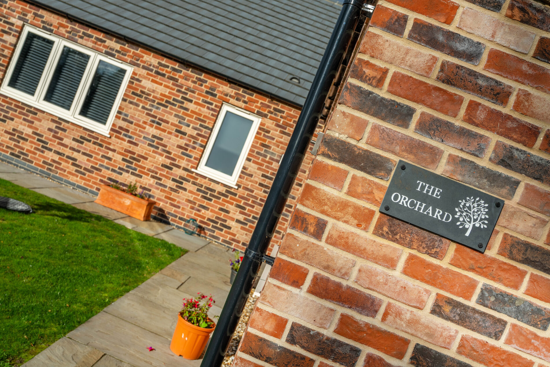 The Orchard is a modern 3-bed detached bungalow with en-suites, open-plan living, separate lounge, utility, underfloor heating, detached garage, parking, and a garden with countryside views.